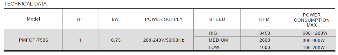 Bomba para piscinas PMFCP-750S con tres velocidades